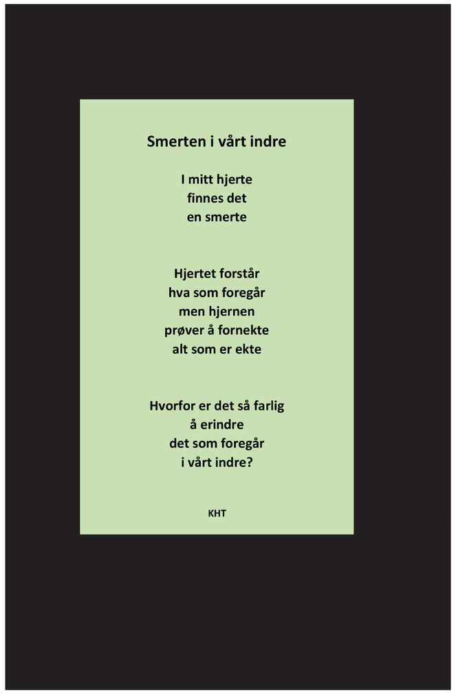 Jeg har problemer med å forstå hvorfor vi har blitt så redde for å vise hverandre hvordan vi egentlig har det og jeg har valgt å lage et dikt hvor jeg forsøker å si noe om dette.
